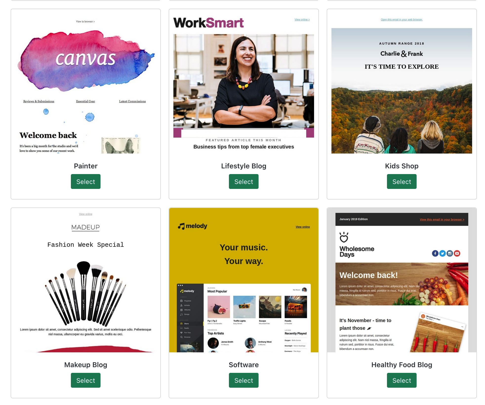 You can choose from several templates to start your newsletters.