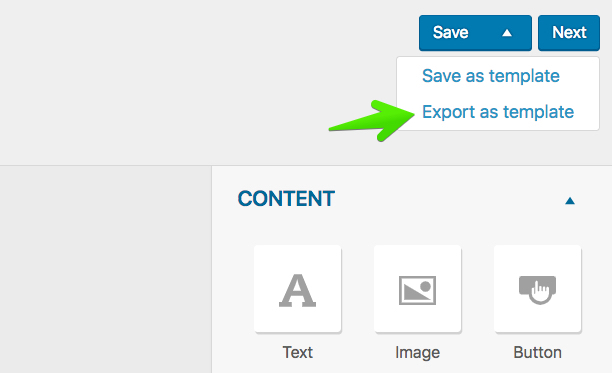 If you design your own template and want to save it as a custom template, you can do it from our MailPoet Newsletter Editor > Save button > Save as template: