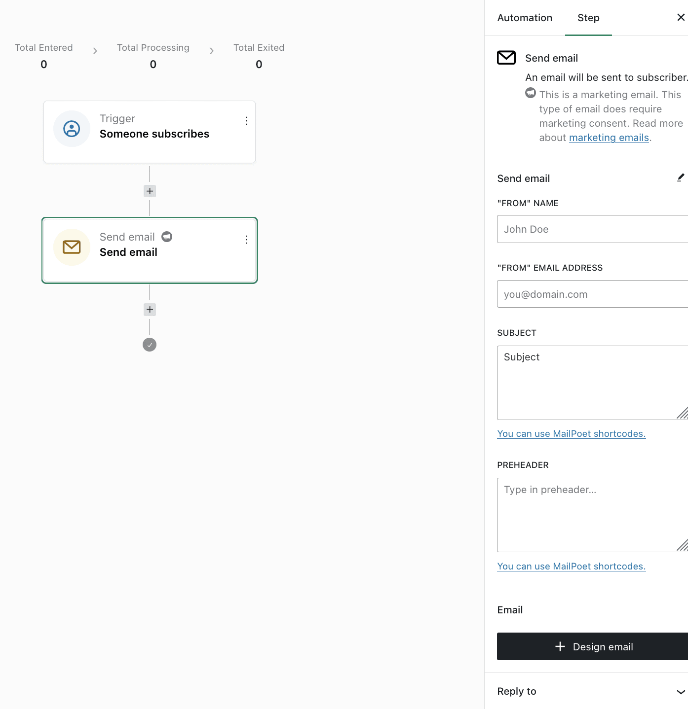 First, create an Automation in MailPoet > Automation > New Automation. Then you can build your Automation using the following elements:
