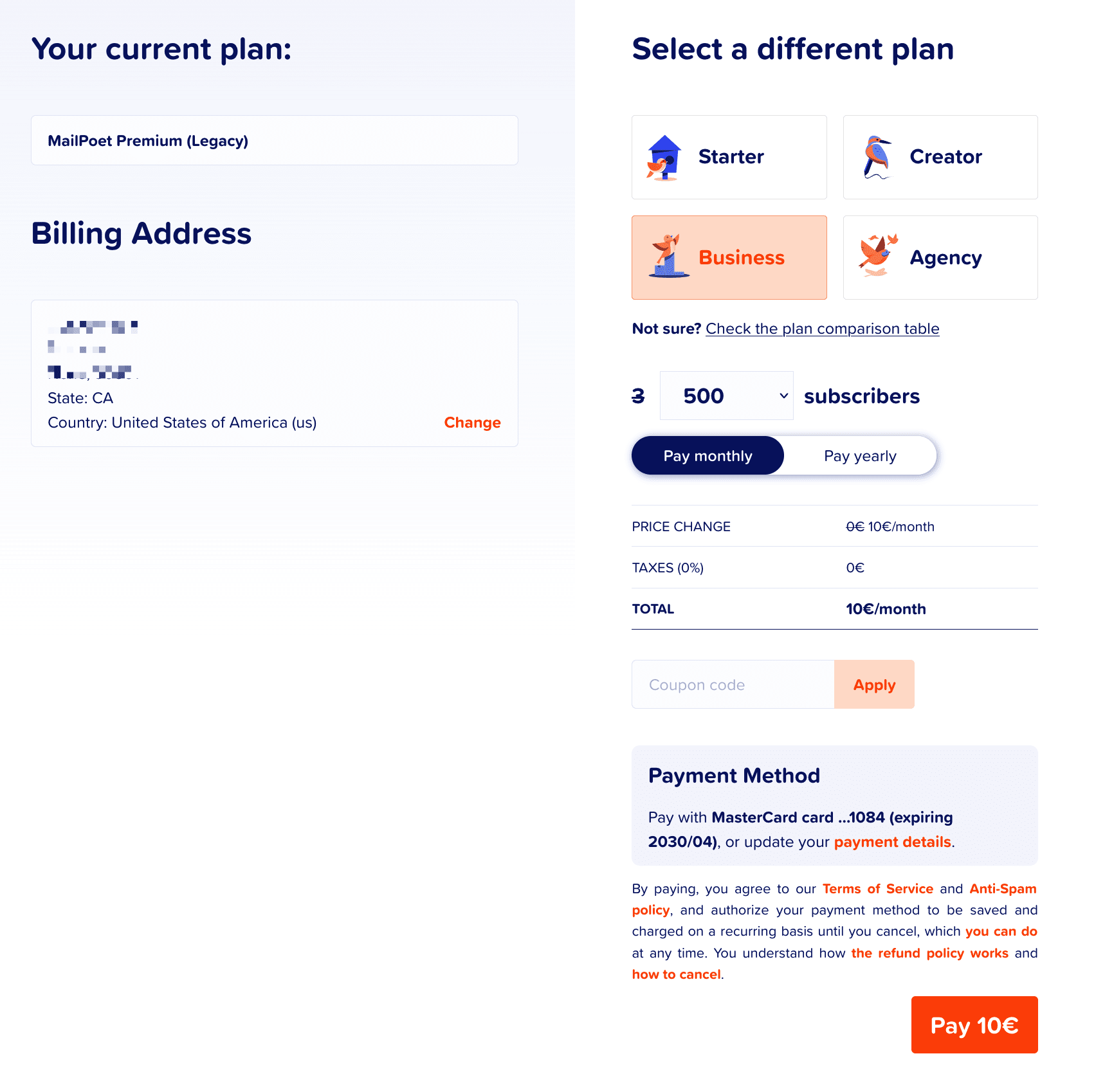 Check the plan type, subscriber limit, and the price for the plan you’re upgrading to, and then confirm the upgrade by clicking on the “Pay” button.