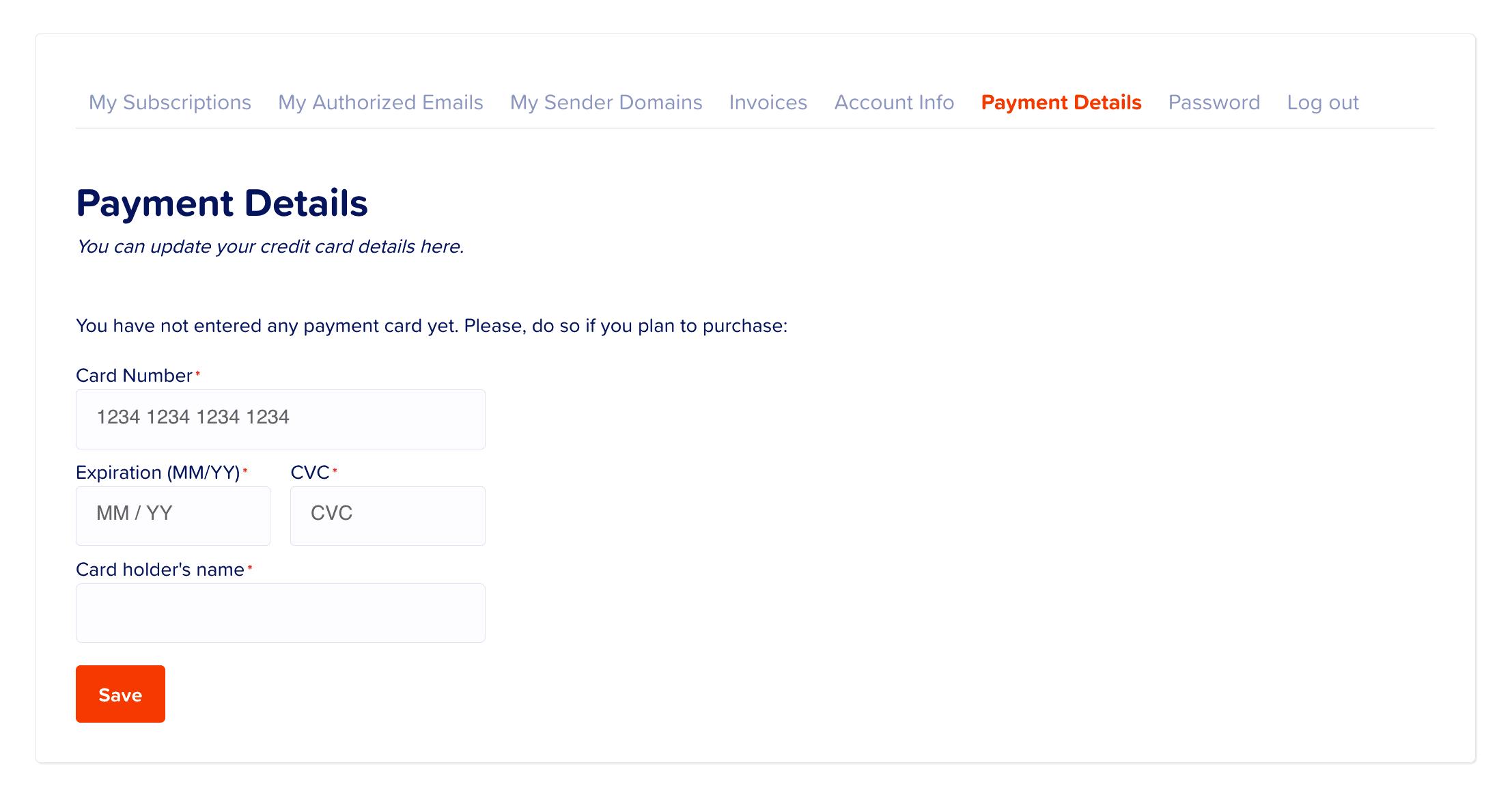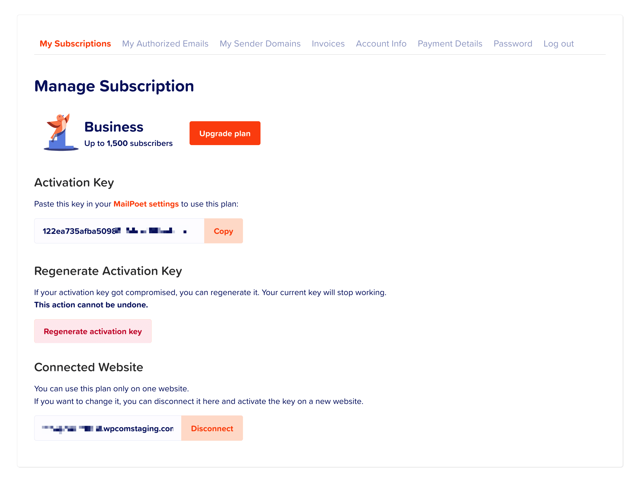 On this page, you will find instructions to manage things related to your account, such as your subscriptions, authorized emails, sender domains, the account personal and billing details, and your payment details.