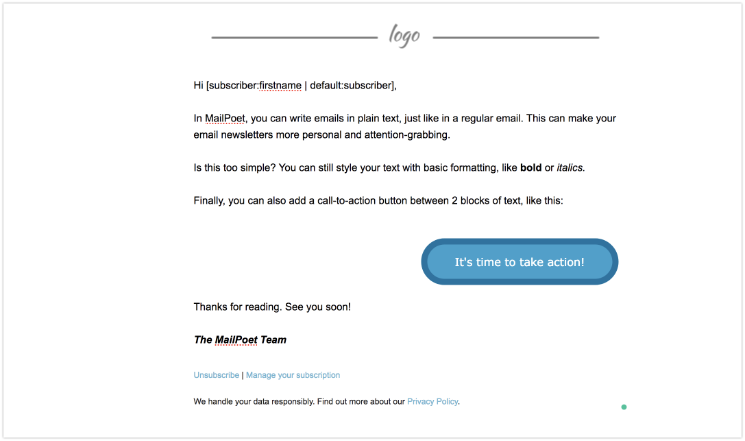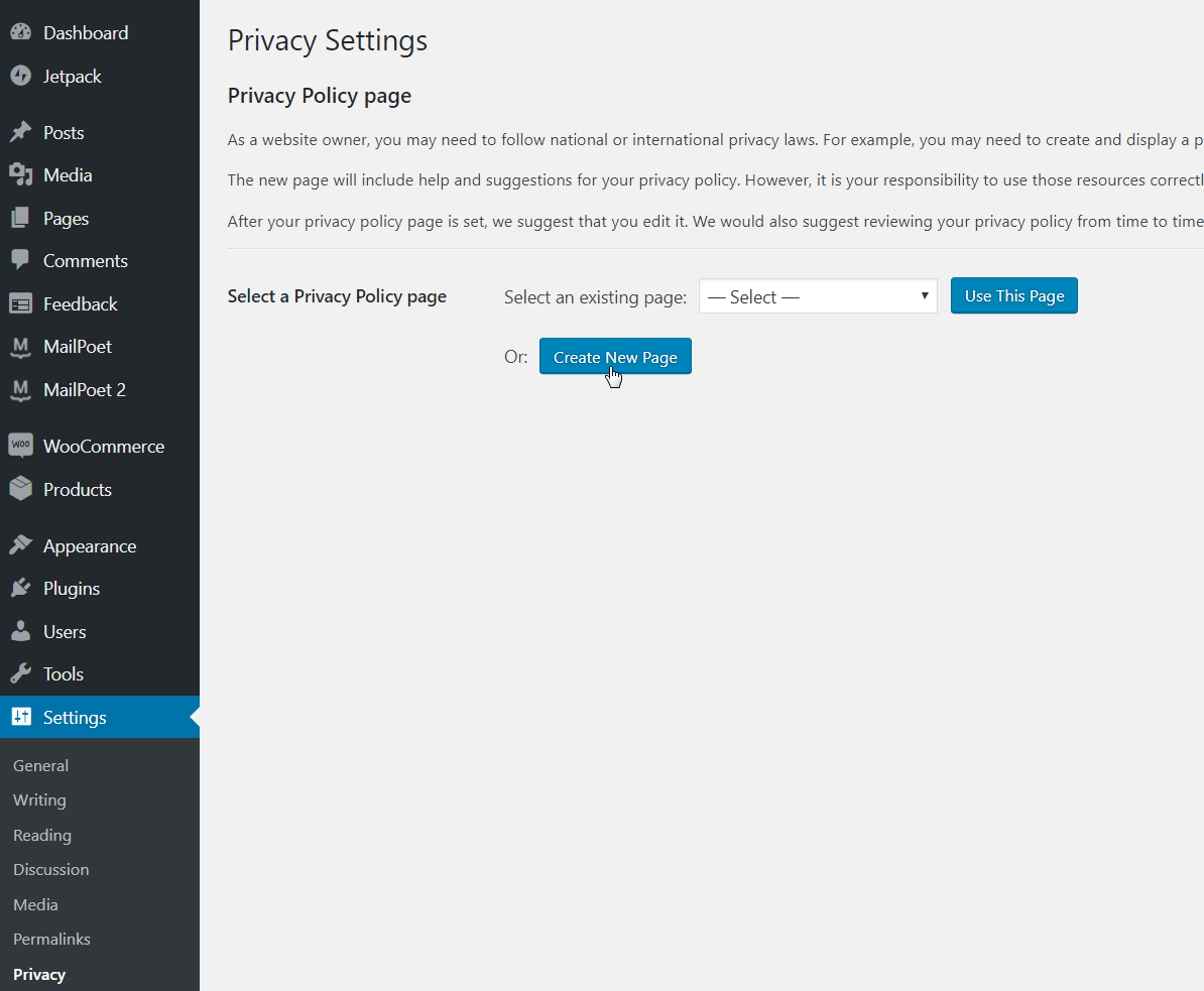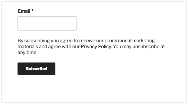 First, you’ll need to publish a Privacy Notice page on your website. For example, here’s MailPoet’s own Privacy Notice.