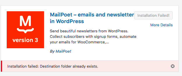If you try to do that via WordPress dashboard > Plugins page and the installation fails, you may see this error message: