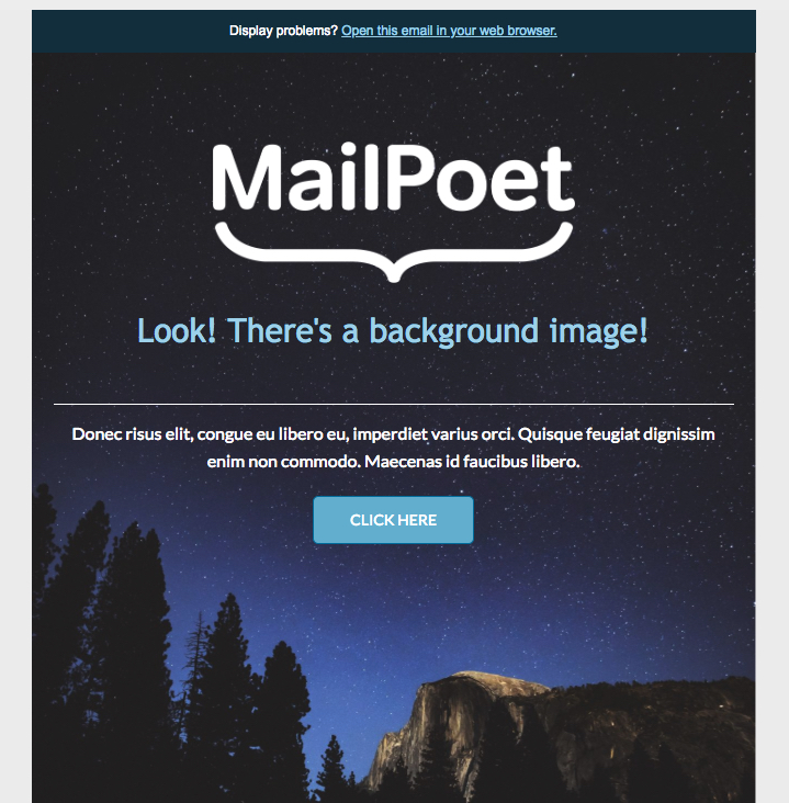 Images can be used as backgrounds for column blocks in the Newsletter Editor (although not for the entire email itself — only the content in the center).