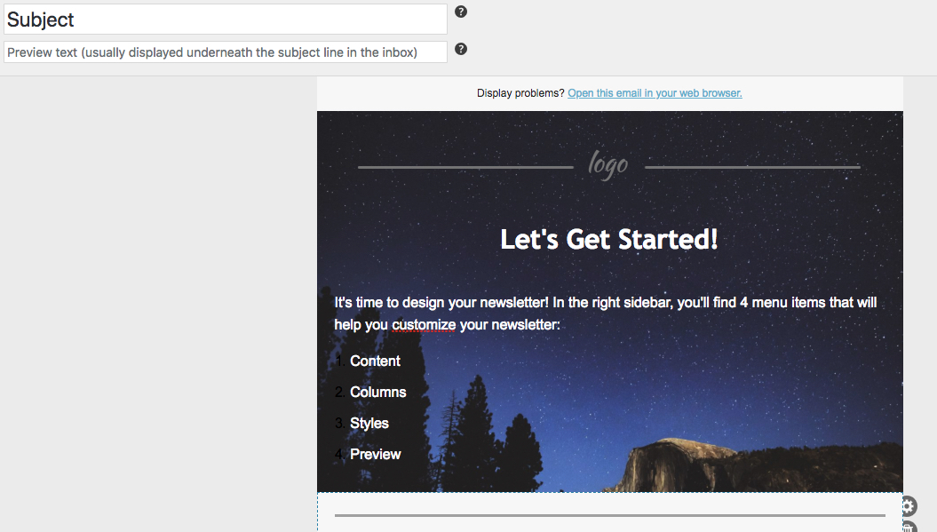 When creating/editing a newsletter on our editor, make sure you have at least one column block added: