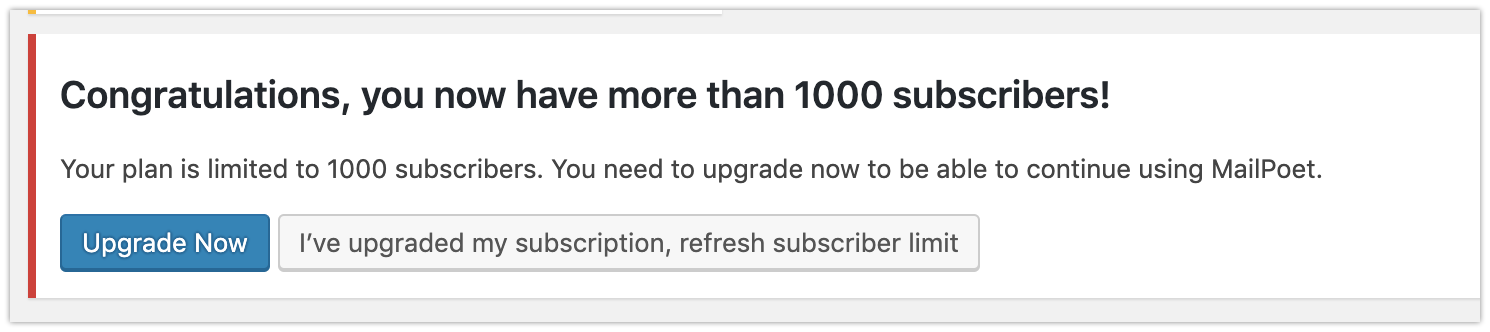 If you’ve reached the subscriber’s limit for your current sending plan, you will see a warning message like this: