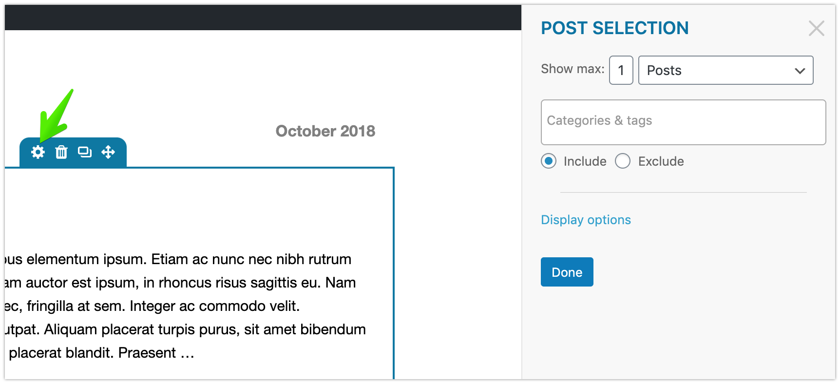 Here you can set to include only some particular categories/tags of posts, or let the widget display all posts except some particular categories/tags by excluding it.