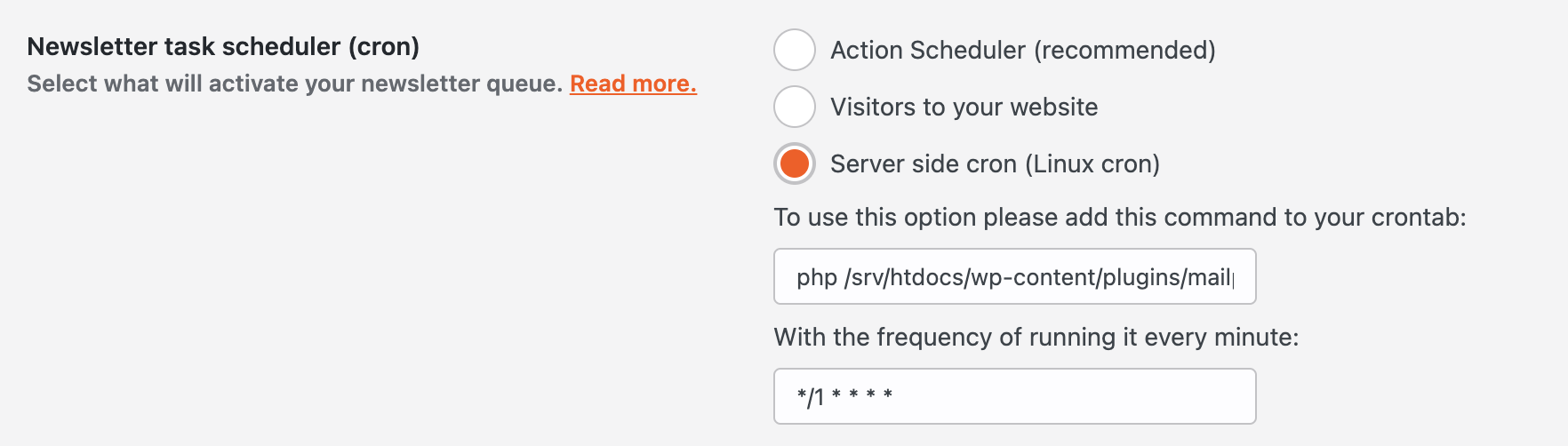 In some cases, sending could be paused if the Server side cron (Linux cron) option is enabled in MailPoet, but the server cron isn’t actually working. You won’t see any error message and the task scheduler might seem to be working fine.