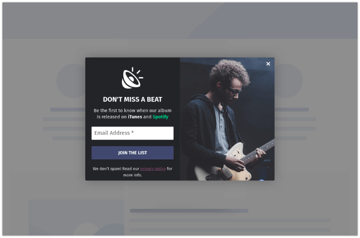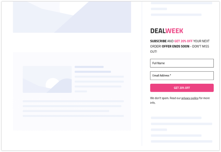 This is a form that pops up on your website after a set amount of time, or when a visitor takes a certain action, such as scrolling to a specific part of the page.