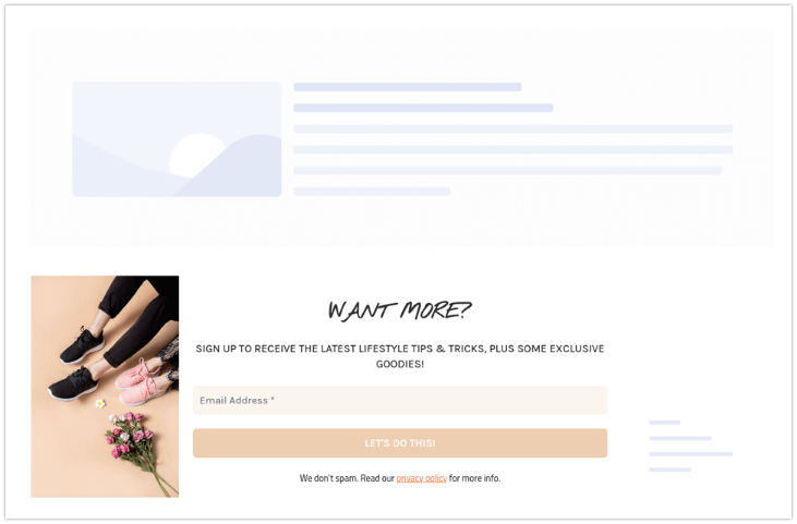 - Encourages visitors to subscribe after they’ve read the website’s content.