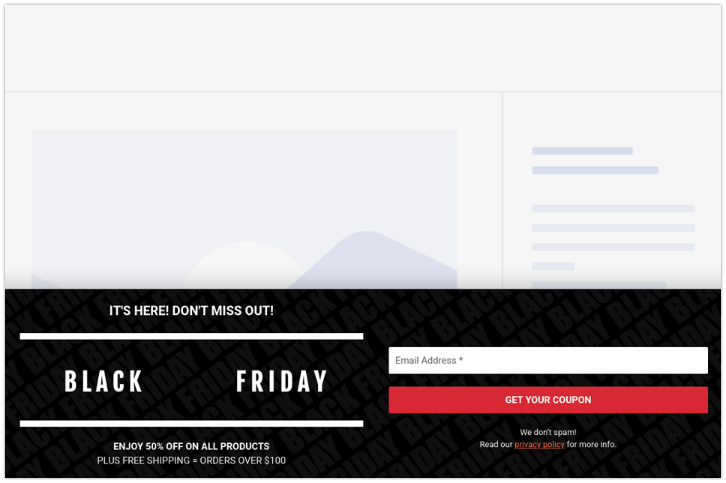 - Can be triggered after a set amount of time or when a visitor takes a specific action (Exit-intent display).