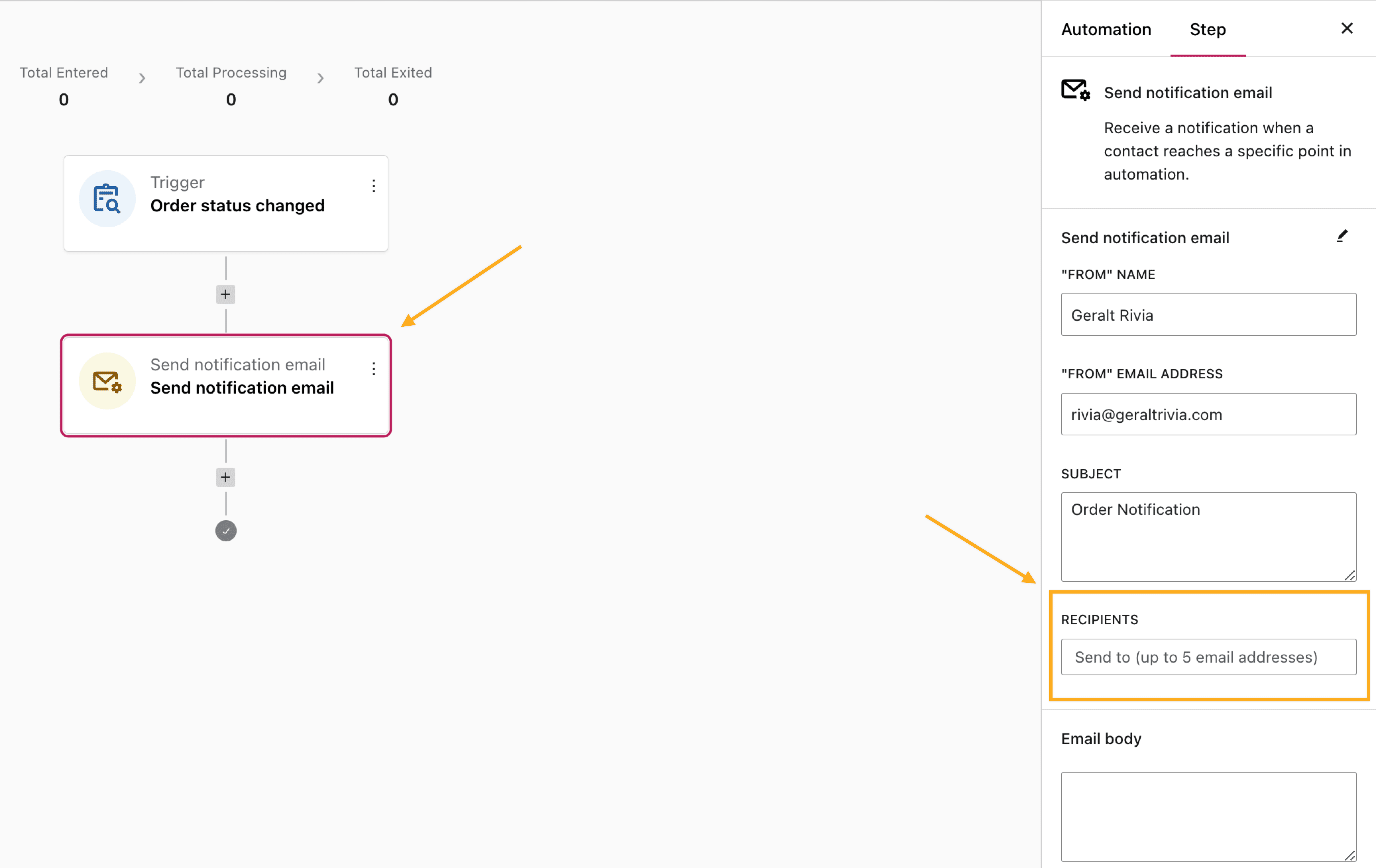 Q: How many recipients can I add in an automation notification?
